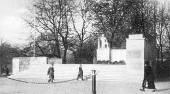 Jürgen Markert aus der Straupitzer Straße meint „Meiner Meinung nach, ist dies das ehemalige Schlageter-Denkmal am Kaiser Wilhelm-Platz. Dieses Denkmal war nach Aussagen meines Vaters eine nationalsozialistische Ikone. Es muss unmittelbar nach Kriegsende zerstört worden sein, denn ich kann mich nur schwach auf die Treppe besinnen.“ Er wie auch Heinz Schiemank erinnern sich an den Wall hinterm Denkmal. „Als Schüler der Hindenburg-Mittelschule (jetzt Teile vom Blechen-Carré) wanderten wir auf dem Wall, um dann jauchzend die Treppen hinab zu hüpfen.“