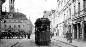 Georg Müller notiert: „Man sieht’s, Eduard Ansorge brauchte sich keine Sorgen zu machen – seine Hotelgäste konnten ja zwischen Semmelntransport und der neuen Technik wählen. Die Technik war damals wirklich neu: es waren nicht die 20er-Jahre, es war vielmehr die Zeit kurz nach der Inbetriebnahme der Cottbuser Straßenbahn im ersten Jahrzehnt des vorigen Jahrhunderts. Der Droschkenbahnhof war gut frequentiert, und die Ungetüme aus Blech und Glas genossen bei Mensch und Tier noch ungeteilte Neugier. Der Triebwagen kam damals aus Breslau, um die elektrischen Teile hatte sich Siemens & Halske gekümmert. Deutlich ist auch im Bild der zu dieser Zeit übliche Bügelstromabnehmer erkennbar.