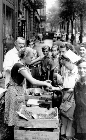 Und auch die junge Frau vor Fritz Rolke ist den Cottbusern vertraut. Georg Müller mailte: „Im Vordergrund steht Tochter Brunhilde. Das stadtbekannte Geschäft zeichnete sich insbesondere dadurch aus, dass der Chef persönlich auf Einkaufstour ging, vornehmlich nach Burg/Spreewald, um so den direkten Weg vom Erzeuger zum Verbraucher herzustellen. Jedenfalls wusste jeder Cottbuser von diesem Laden, und natürlich auch ein junger Journalist, dessen Weg von zu Hause in die Redaktionsstube direkt längs der Bahnhofstraße vorgezeichnet war. Da muss sich wohl zwischen diesem Hans-Joachim Schulze, dem späteren Sportreporter, und der Kaufmannstochter eine zarte Beziehung angebahnt haben. Kaupe, so sein Spitzname, hatte nicht nur Augen fürs Spreewaldgemüse. Nach einigem Hin und Her verabredete man sich zur Klosterkirche: die beiden über die Ohren Verliebten heirateten im Juli 1955. Sie schlossen damals den Bund fürs Leben, im wahrsten Sinne des Wortes. Der hält bis heute.“