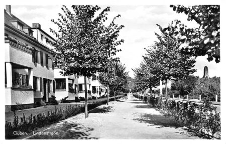 Bärbel Koschack schreibt: „Die Lindenstraße ist richtig (ca. 1935). Heute heißt sie Miadowa-Straße in Gubin. Sie liegt nördlich der Stadt und war früher für Besucher zur Baumblüte die Verbindung Bahnhof-Nordbrücke-Grüne Wiese-Kleine Himmelsleiter- Lindenstraße- Triftstraße-Fruchtstraße in die Gubener Berge zum Bismarckturm, den man auch rechts im Bild sieht. Die Häuser waren neu erbaut für die Offiziere z. B. der Moltkekaserne. Zu dieser Zeit war Guben eine Garnisonsstadt. Die Linden am Straßenrand gaben ihr den Namen. Es war keine Geschäftsstraße, nur die Bäckerei Fritz Bähr ist zu nennen, Lindenstraße 11. Noch heute gibt es die Linden, und einige Häuser sind noch erhalten. Sie waren teilweise von einer Wohnungsbaugesellschaft erbaut worden. An der Einmündung zur Triftstraße gabelte sich diese in Lahmower- und Seitwanner Straße. An dieser Gabelung lag der Lindengarten, ein renommiertes Garten- und Tanzlokal. Heute ist dort ein freier Platz.“