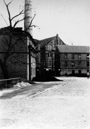 Ich bin Käthe Ruhnow, geborene Richter, und habe hier meine Ausbildung mit dem Abschluss als Industriekauffrau von 1942 bis 1944 absolviert. Anschließend habe ich hier bis 1958 als Buchhalterin gearbeitet. Mein Büro befand sich im mittleren großen Gebäude im ersten Stock, in dem sich auch das Tuchlager befand. Im vorderen rechten Gebäude befanden sich die Zwirnerei und die Weberei. Die Spinnerei war im Zweigbetrieb in der Thälmannstraße angesiedelt. Der damalige Chef der Tuchfabrik war Gerhard Groeschke, der mit seiner Frau Marie in der Villa C. A. Groeschke-Straße 3 wohnte, die sich hinter dem mittleren großen Gebäude befand. Da Bild ist für mich ein schönes Stück Jugenderinnerung, denn in diesem Jahr feiere ich meinen 90. Geburtstag.“