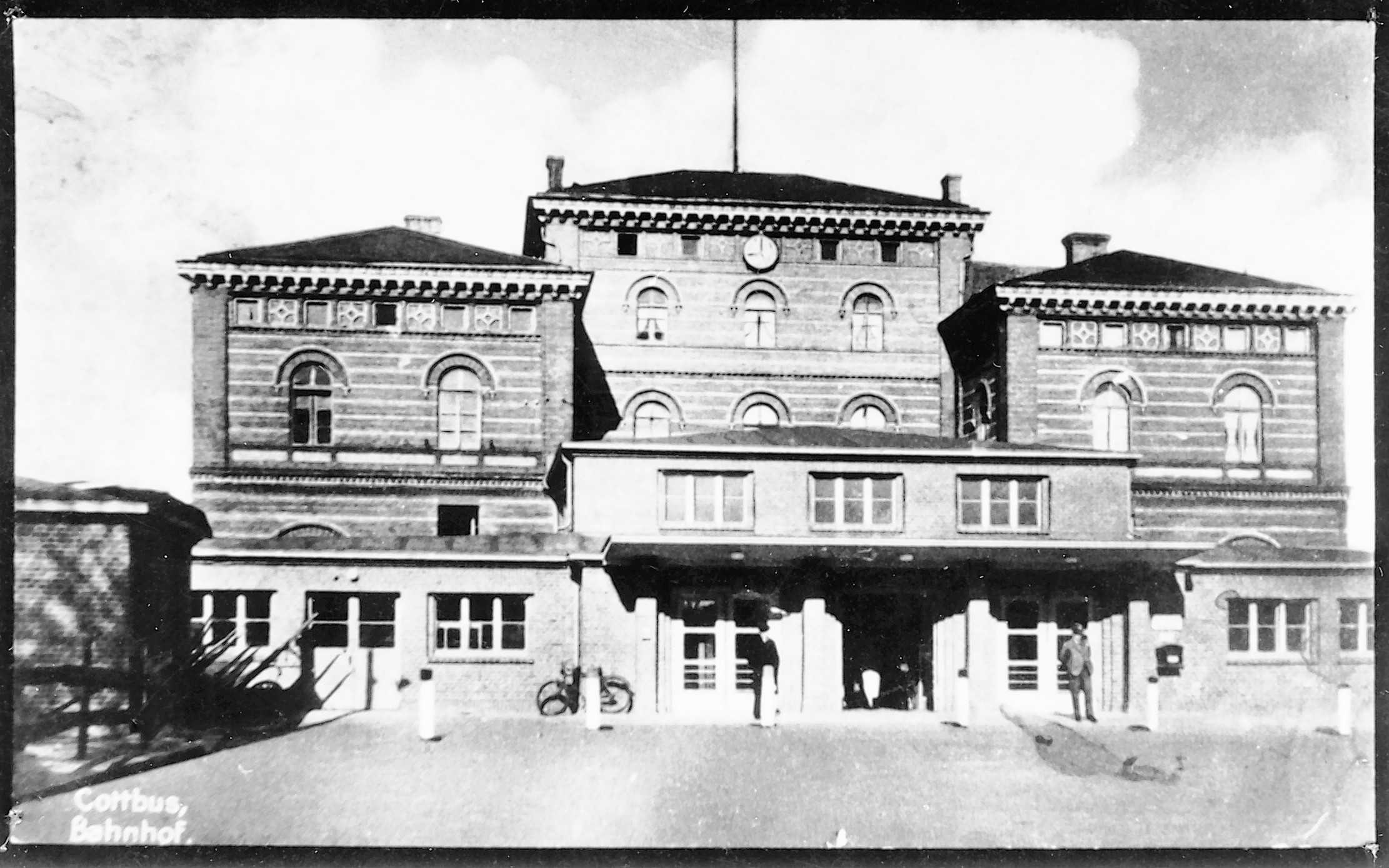 Am 22. April 1945 wurde es durch die Nazi-SS gesprengt, die im Keller eine Stabsstelle eingerichtet hatte. Das erste Cottbuser Bahnhofsgebäude war es aber nicht. An der Nordseite befindet sich noch heute der Großenhainer Bahnhof, betrieben von 1876 bis 1885 für eine andere Bahngesellschaft. Er diente später der Reichs- und dann der Bundesbahn als Büro. Nach Baracken-Jahrzehnten konnte endlich 1978 an der Vetschauer Straße ein neues, damals wegen der blauen und weißen Mosaiksteinchen an den Außenwänden spöttisch ‘Bayerischer Bahnhof’ genanntes Bahnhofsgebäude eingeweiht werden.