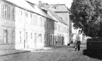 Einen Werkstattbesuch schildert Helga Steglich am Telefon: „Ganz links ist ein kleines Stück vom Haus zu erkennen: Das war die Werkstatt vom Tapezierer und Dekorateur Eichhorn. Dort hatte mein Vater gearbeitet. Meine Schwester und ich hatten ihn als Kinder dort oft besucht. Hier wurden Liegen, Sofas, Chaiselongues, Sessel und Stühle aufgearbeitet. Besonders spannend fand ich, wie der Stoff zuerst mit Nadeln festgesteckt und dann mit einer Rundnadel angenäht oder mit kleinen Nägeln und einem interessanten Hammer befestigt wurde. Wir waren ganz stolz auf Vater, wenn er dort arbeitete. Auch zuhause hat mein Vater unsere Möbel erneuert und gut gepflegt. Ich besitze noch zwei alte Stühle aus dieser Zeit, die mein Vater selbst bezogen hat. Das Haus mit der Polsterei war sehr niedrig, große Menschen mussten den Kopf einziehen, um sich an dem Türrahmen nicht zu stoßen. Ein Geschäft gab es nicht, man ging direkt in die Werkstatt hinein. Ich weiß, dass der Sohn von Herr Eichhorn noch in Guben lebt, vielleicht meldet er sich auch noch dazu.“