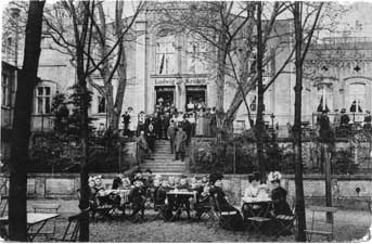 Die Aufnahme ist vermutlich um die Jahrhundertwende entstanden. Am 10. August 1935 heirateten die Eltern meines Mannes im Bergschlösschen. Es wurde gefeiert und gegessen. Auf der Speisekarte standen erlesene Speisen wie Schleie mit brauner Butter und auch Rehrücken in Sahnesoße.