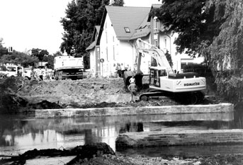 „Das Bauwerk ist die heutige Agentur für Arbeit und des Lohnsteuerhilfe-Vereins e.V. Brandenburg in der Bauhofstraße 1“, schreibt Gerhild Herrmann aus Spremberg. „Das Grundstück gehörte früher dem bekannten Unternehmen ‘Urbantke & Heydenreich – Elektromotoren-, Transformatorenreparatur und Ankerwicklei’. Einst stand hier ein Flachdach-Werkstattgebäude, davor war ein Parkplatz, gegenüberliegend die SED-Kreisleitung.“ Aber nicht nur dieser Bau wurde von unseren Lesern gut erkannt, auch zu einem heute hübschen Fleck gibt es Hinweise: „Rechts vom Bagger befindet sich ein Granit-Gedenkstein auf dem zu lesen ist ‘An den Mühlen Nummero 1’. Der Großvater von Erwin Strittmatter betrieb hier einen Laden und pflanzte die Linde vor dem Haus. Sie steht heute noch.“