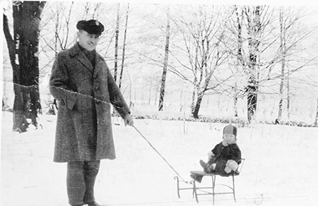 Cottbus (H.N.). Winterbilder aus frühen Jahren sind selten, weil auch Kameras selten und wohl nicht so frostsicher waren. Umso wertvoller sind die Fotos von 1930/ 31, aufgenommen bei einer Schlittenfahrt an der Steinteichmühle. Papa Albert N. posiert mit Töchterchen Hanna bei einer kleinen Schlittenfahrt durch die idyllisch verschneite Winterlandschaft. Nach einem Besuch bei den Großeltern, die ganz in der Nähe der Steinteichmühle gegenüber dem Priorgraben ein kleines Häuschen hatten.