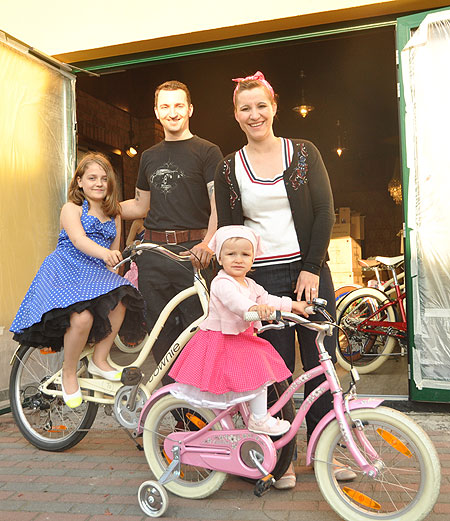 Burg (mk). Gutgelaunt ist Kai Steffen. Was mit einer Fahrradvermietung im Spreewald anfing, wird nun zum kultigen Laden für alle Rockabilly-Fans. Die Räder der Marke „Electra“ schlugen bei den Mietern ein. Die Cruiser-Räder aus Kalifornien mit hohem Lenker schonen Rücken, Gelenke und Po, so dass der Spreewald unbeschwert genossen werden kann. Die Räder von Kai Steffen rollen bereits auf Usedom, in Hamburg und vielen anderen Orten der Bundesrepublik. Die Mieter wollten die kultigen Räder einfach besitzen. Die Marktlücke war gefunden. Wenn der neue Laden von Kai Steffen namens „Rock ‘N’ Thirteen“ am 8. Mai in der Nähe des Burger Hafens eröffnet, wird es noch mehr zu sehen geben, als die bequemen Räder. Kai Steffens hat gemeinsam mit seiner Frau Nicole die Idee gehabt, sich von der breiten Masse anderer Fahrradläden abzuheben. So wirkt der neue Laden in Burg eher wie ein Wohnzimmer vergangener Zeiten. Ein Kronleuchter und edle Tapete versprühen das Flair der 50er-Jahre. Malermeister Uwe Woschech hat hier Hand angelegt.