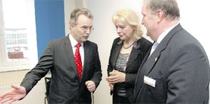 Jänschwalde (hnr.) Nachdem das Unternehmen KSC letzten August in Hagenwerder unter großer Beachtung im schlesisch-sächsischen Raum eine Produktionshalle für 4,8 Millionen Euro einweihen konnte, gab es dieser Tage kräftige Händedrücke in Jänschwalde. Direkt neben Kraftwerksblöcken hat KSC ein Bürohaus als neue Schaltzentrale eröffnet. Michael Stein, geschäftsführender Gesellschafter im Kraftwerks-Service, sieht das als „Zeichen unserer Sesshaftigkeit hier im Haifischbecken“. Direkt am Kraftwerk, wo in Kürze der Bau der CO2-Abscheider-Demonstrationsanlage beginnt, drängt sich auch dank Vattenfall zuliefernde Wirtschaft in guter Auftragslage. „Wir haben uns 1996 gegründet, mit knapp sieben Millionen Jahresumsatz angefangen und schaffen heutzutage 32 Millionen. Darauf sind wir stolz“, sagt Michael Stein, hier auch als Förderer von Kultur und Sport bekannt. 161 Leute beschäftigt das Unternehmen, darunter 22 Lehrlinge, um die sich Karin Stein als Leiterin für Immobilien und Berufsausbildung kümmert. Die Jungs bekommen in 3,5 Jahren eine erstklassige Ausbildung zum Industriemechaniker mit dem Ziel, sie im Unternehmen zu behalten. „Leider fehlt es an geeigneten Bewerbern“, bedauert die sehr für den Nachwuchs engagierte Frau.“