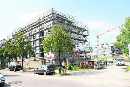Ob Eigentum oder gemietet – in der Lausitzer Straße in Cottbus entstehen derzeit 80 Wohnungen mitten in der Stadt. Am 3. August wurde Richtfest gefeiert. Wie der Projektherr Denis Reißbach, Gesellschafter der Treuwert Projektgesellschaft mbH erklärt, sollen die meisten Wohnungen noch in diesem Jahr bezogen werden. Interessenten haben dabei die Wahl zwischen Zwei- und Dreiraumwohnungen mit Balkonen aber auch Penthouse-Wohnungen werden geboten. Die großen Terrassen bieten hier besten Ausblick. Die Fläche ist 13 000 Quadratmeter groß. Auch Gartenflächen, Stellflächen für Autos und Garagen wird es geben. Nebenan soll ein REWE-Supermarkt entstehen.