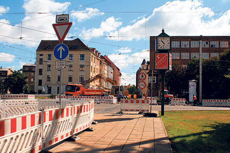 Die damals verlegten Gleisanlagen, eine Doppelgleiskreuzung und acht Weichen, sind marode und müssen unbedingt erneuert werden. Damit sind Änderungen in der Verkehrsführung notwendig, die sogar manchmal tagesaktuell noch konkretisiert werden. Die Berliner Straße ist grundsätzlich zwischen Bahnhofstraße und Gertraudtenstraße gesperrt. Gleichermaßen können Autofahrer die Sandower Straße nur in eine Richtung nutzen, nämlich von der Gerichtsstraße bis zum Oberkirchplatz.