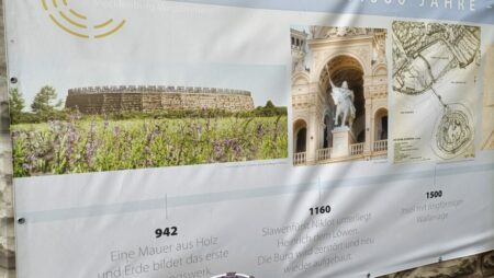 Wie das Schloss wurde was es ist, erklären Bilder, angefangen beim Jahr 942. Bei dem Motiv handelt es sich allerdings zweifelsfrei um die Slawenburg Raddusch. Ist die nun auch ins Welterbe-Register aufgerückt? Vetschau als Burgeigner dürfte sich freuen. Für Touristen wäre ein Hinweis auf den Ort im Spreewald eine faire Geste.