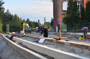 Guben (ha). Sandsäcke säumen die kleinen Gassen zwischen der Alten Poststraße und der Neiße – die Hochwasserschutzmaßnahmen werden sehnlich von den Anwohnern erwartet. Die haben aber schon seit Wochen Baulärm und schwierige Zuwege zu ertragen, denn der erste Bauabschnitt für den Straßenbau ist in vollem Gange. Mit Hochdruck werden die säumenden Pflaster- und Bordsteine verlegt, die Baufirmen hoffen auf lange ausbleibenden Frost. Denn sie hatten mit dem Hochwasser schon eine ärgerliche Pause einzulegen.
