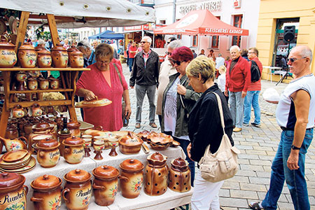 Spremberg (trz). Was für ein Töpfermarkt: Bei Temperaturen um 23 Grad und strahlendem Sonnenschein haben es sich am letzten September-Wochenende tausende Besucher im Spremberger Stadtzentrum gut gehen lassen. Dort boten rund 20 Töpfer ihre Waren feil. Dazu gab es weitere Kunsthandwerke. Selbst aus der Ukraine waren diverse Geschenkartikel zu finden. Für Furore sorgte am Sonntagnachmittag der Dresdner Peter Till mit seinem Druckluftorchester. Das Ein-Mann-Ensemble mit den teilweise schrägen Tönen zog viele Lacher auf seine Seite.