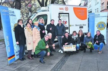 Cottbus (MB). So schön kann Weihnachten sein! Alle Beteiligten hatten ein richtig gutes Gefühl, als aus einer Gemeinschaftsaktion des Lions Club Cottbus, der Lions Frauen Cottbus-Lausitz, der Lidl-Kunden-Pfandaktion, des Albert Schweitzer Werks und des Mercedes Autohauses Cottbus eine riesige Summe zusammenkam, die zur Anschaffung eines Tiefkühl-Transporters für die Cottbuser Tafeln reichte. Übergeben wurde das Auto auf dem Schlosskirchplatz, wo die Lions-Freunde seit Jahren innerhalb des Weihnachtsmarktes feinen Glühwein für einen gute Zweck ausschenken.