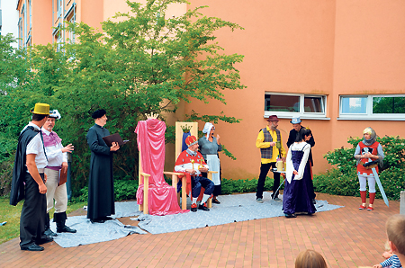 Mit „König Drosselbart“ begeisterten Mitglieder des Naemi-Wilke-Stifts als „Theatergruppe BühnenReif“ Kinder und Erwachsene beim 137. Jahresfest der Stiftung am Sonntag (28.06.). Es war Teil des festlichen Abschlusses des Jahresfestes, zu dem am Freitag zuvor eine weitere deutsch-polnische Fachtagung mit Schautag und ein Betriebsausflug für die Mitarbeiter am Sonnabend gehörten
