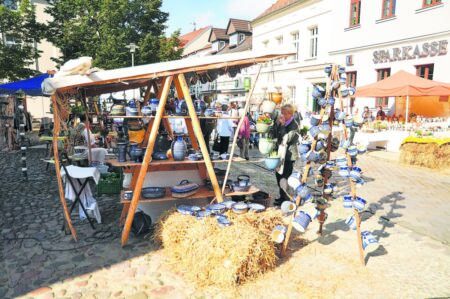 Spremberg (jk). Einer guten Tradition folgend findet am letzten Wochenende im September in Spremberg der historische Töpfermarkt statt. Bereits zum 14. Mal präsentieren Töpfer, Keramiker und Kunsthandwerker ihre liebevoll und individuell gefertigten Erzeugnisse. In ausgefallenen Techniken, Formenvielfalt und Farben werden Gebrauchskeramik wie Krüge, Kannen, Geschirr, Schalen und Figuren auf einfachen Kisten, Stroh, alten Wagen und Regalen dargeboten. Die Handwerker reisen aus Brandenburg, Sachsen und Berlin an und bringen ihre Schätze mit. Viele der Töpfer sind bereits Stammgäste. „In die „Perle der Lausitz“ kommen die Töpfer besonders gern, denn sie schätzen unsere familiäre Atmosphäre“, weiß Toralf Hasse, Vorsitzender des örtlichen City-Werberings.