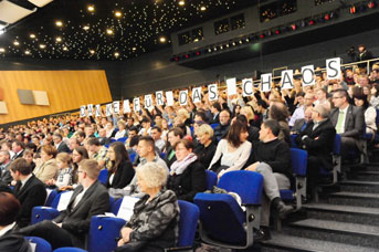 Ministerin Prof. Sabine Kunst bemüht sich um Lockerheit, nennt die Vorzüge neuer Studiengänge der Pflege und Therapie in Senftenberg, gibt sich ortskundig: „Ich bin erstaunt auch über die Kneipen, die es neben der Hochkultur, für die ich verantwortlich bin, hier gibt.“ Sie wird von Spruchtafeln irritiert, die noch immer die Mängel der Hochschulfusion benennen. Bürgermeister Holger Kelch (CDU) fordert unterdessen die Neuankömmlinge auf, die Lernstadt Cottbus zu erobern und sich einzumischen.