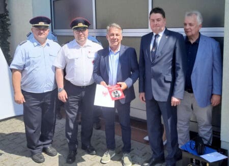 Grießen (MB). Im Rahmen des Jubiläums der Feuerwehr Grießen wurde der Bauern AG Neißetal das Förderschild „Partner der Feuerwehr” verliehen. Die Bauern AG stellt nicht nur ihre Mitarbeiter ohne zu zögern für Ausbildungen und Einsätze frei, sondern unterstützt die Feuerwehren der Gemeinde Schenkendöbern und des Amtes Peitz aktiv. Ein kleines Beispiel dafür reicht ins Jahr 2007 zurück. Als die Ortswehr Grießen ihr neues Einsatzfahrzeug bekam, stand sie vor einem Problem: Es gab keine Unterstellmöglichkeit. Zwei Jahre lang konnten die Kameraden eine Garage der Bauern AG nutzen, bis das neue Feuerwehrhaus fertig war – und das kostenfrei.