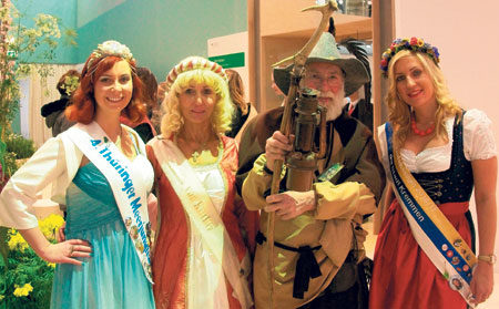 Die beiden Lausitzer Originale Jutta von Kittlitz (Veronika Dubau (2.v.l.) und das Graue Männlein (Günter Kalliske) haben auf der Grünen Woche in Berlin gemeinsam mit weiteren Hoheiten für die Region geworben. Insbesondere das Berliner Publikum wurde für einen Besuch in Spremberg und um Lausitzer Seenland begeistert. Insgesamt hatten sich auf der größten Ernährungsmesse der Welt 154 Hoheiten aus ganz Deutschland präsentiert Foto: pr.