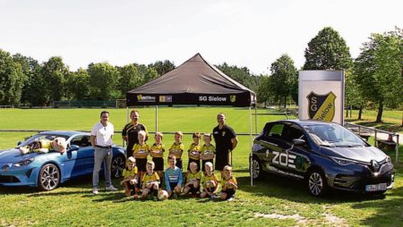 Cottbus (MB). Sonnenschutz für die Kicker: Jens Härtel (l.), Geschäftsführer vom Autohaus Härtel & Söhne, sponserte den Jungs von der SG Sielow zwei Sonnenzelte. Trainer Rene Bramer (r.) ist dankbar und freut sich über die zwei schattigen Plätzchen am Spielfeldrand.