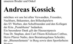 Finden Sie hier Traueranzeigen, Todesanzeigen und Beileidsbekundungen aus Südbrandenburg. Traueranzeigen und Danksagungen können Sie direkt hier online aufgeben und gestalten.