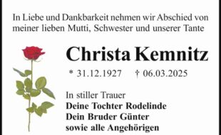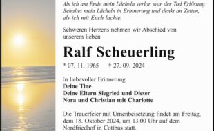 Finden Sie hier Traueranzeigen, Todesanzeigen und Beileidsbekundungen aus Südbrandenburg. Traueranzeigen und Danksagungen können Sie direkt hier online aufgeben und gestalten.