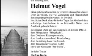 Finden Sie hier Traueranzeigen, Todesanzeigen und Beileidsbekundungen aus Südbrandenburg. Traueranzeigen und Danksagungen können Sie direkt hier online aufgeben und gestalten.