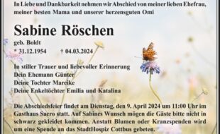 Finden Sie hier Traueranzeigen, Todesanzeigen und Beileidsbekundungen aus Südbrandenburg. Traueranzeigen und Danksagungen können Sie direkt hier online aufgeben und gestalten.