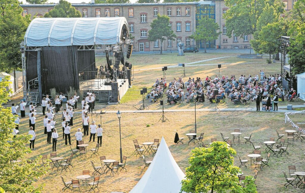 Einzigartig, und das gleich zweimal aufeinanderfolgend, war die feierliche Stimmung des Sonnenlichtes, das aus Großströbitzer Richtung über die Kasernendächer streifte – mit letzter Kraft noch, als langer, dankbarer Beifall (nebst Zugabe) verhallte. Hnr.