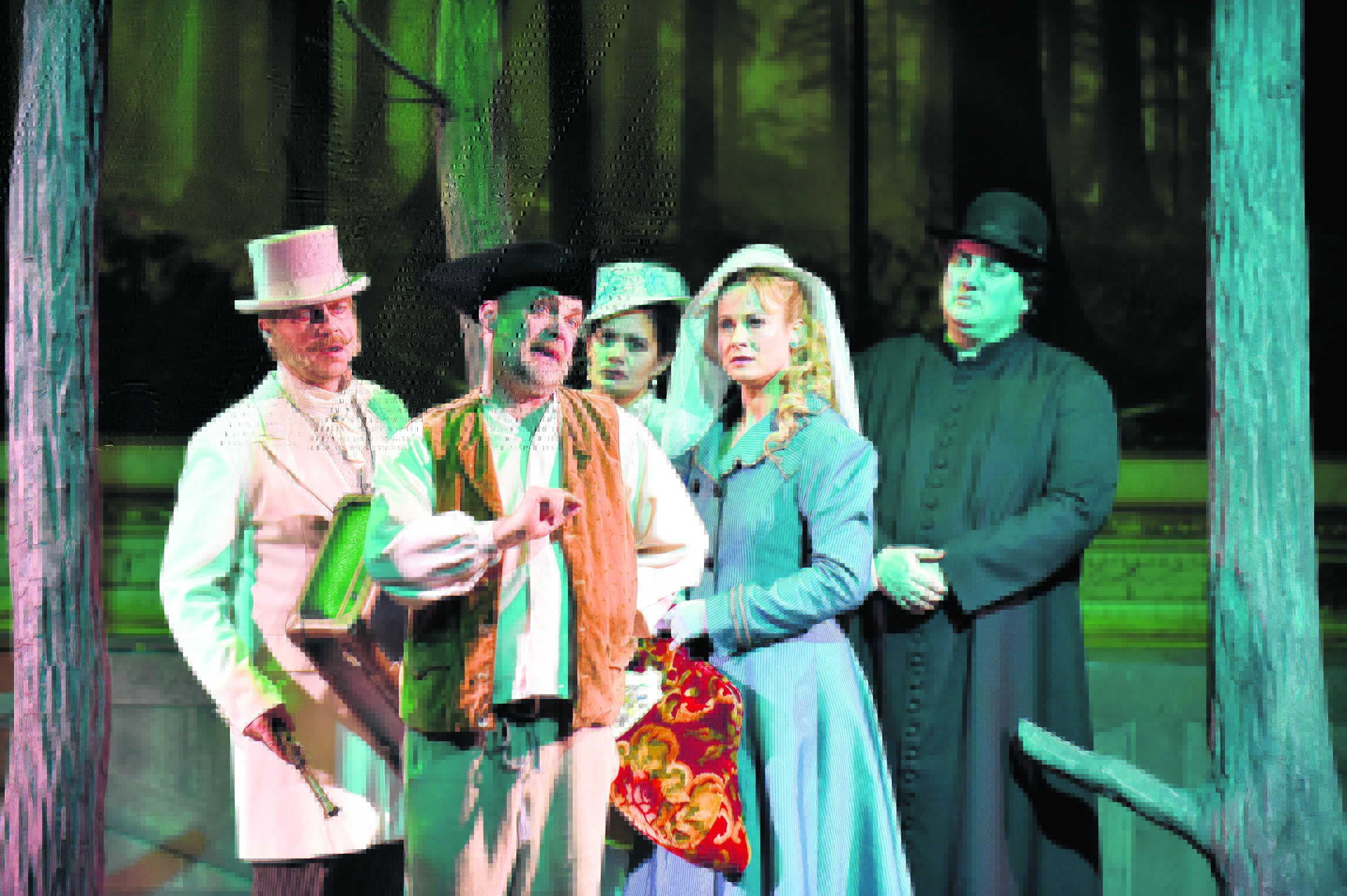 In der turbulenten Verwechslungskomödie, die aus dem Kurt-Hoffmann-Film mit Lieselotte Pulver in vielen Hinterköpfen steckt, begegnen den Theaterfreunden teils überraschende Besetzungen. Schüler konnte sein Opernpersonal für die gewiss intensive Spessart-Strecke nicht aus den Inszenierungen des Großen Hauses reißen und besetzte überraschend mit vertrauten Gästen. So lässt sich Anne Schierack bei ihrer Heimkehr (nach langen Ausflügen als „Lucie“ ins Pückler-Land) in der Hauptrolle der Comtesse von Sandau feiern. Die Sängerin meistert die Partie stimmlich locker, und spielerisch wirkt sie frisch, temperametvoll und witzig wie von der Leine gelassen. Ihre Hosenrolle als frecher Jungräuber macht ihr Spaß und reißt die ganze Bande förmlich mit. Christian Henneberg, der Edel-Räuberhauptmann muss sich in dieses verschmitzte Wesen verlieben und gibt einen strahlenden Helden im schönen Kontrast zu dem geldgierigen Vater seiner angehenden Partnerin (Torsten Coers ist da wirklich entsetzlich unsympathisch).