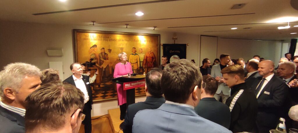HWK-Präsidentin Corina Reifenstein und Wirtschaftsminister Jörg Steinbach informieren sich vor Ort.